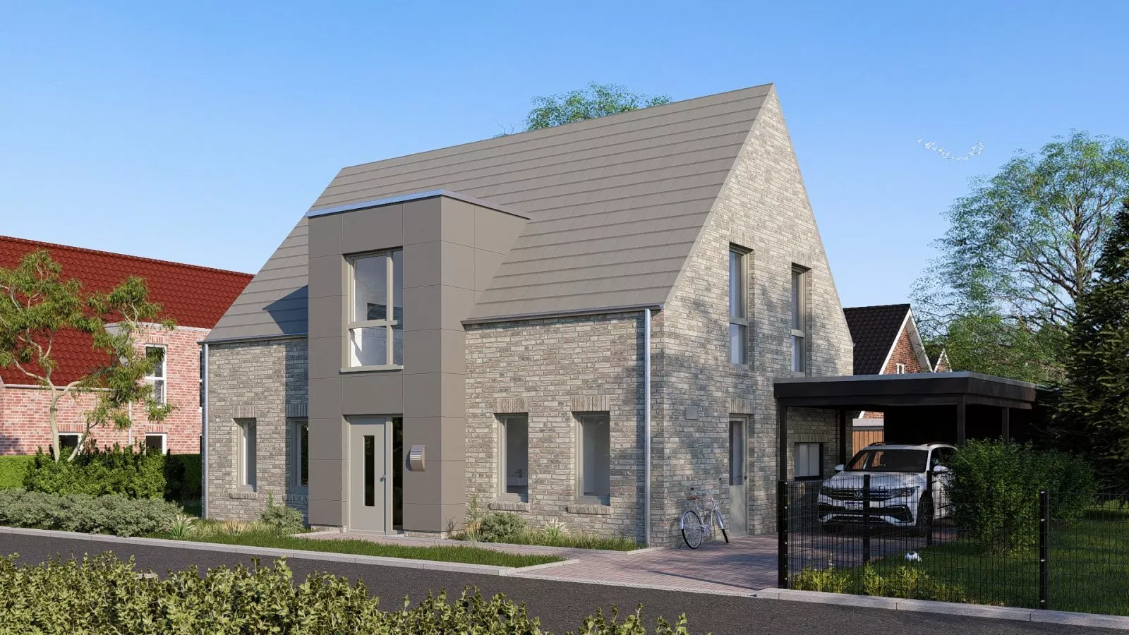 Bei diesem Familienhaus mit 130 Quadratmetern Wohnfläche gelten unsere hohen Standards: Wir verwenden nur erstklassige Markenprodukte und hochwertige Baustoffe und leisten mit unserem Profi-Team meisterhaftes Handwerk. Bei der Haustechnik setzen wir auf Wärmepumpen mit Fußbodenheizung und zentraler Be- und Entlüftungsanlage mit Wärmerückgewinnung. Dabei ist es uns gelungen, dieses Aktions-Einfamilienhaus sehr günstig zu kalkulieren. Architektonische Details wie der dritte moderne Giebel, extra große Fensterflächen und der Fassadenwechsel schenken diesem Einfamilienhaus Individualität. Ein wirklich schönes Zuhause!