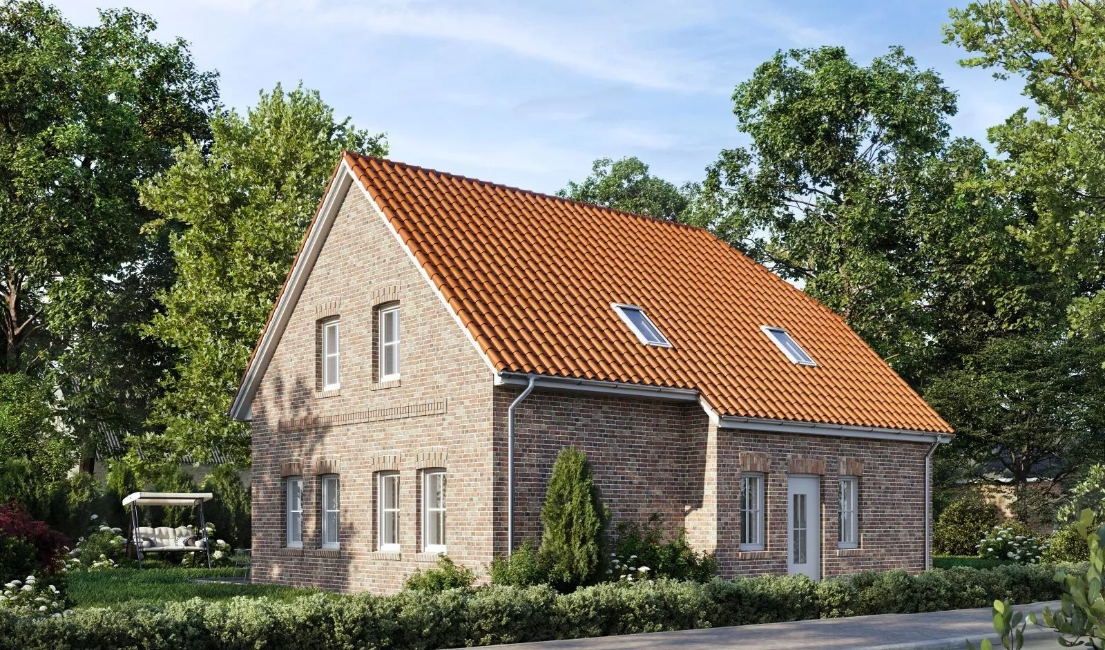 Tradition und Moderne vereint: Unser Fehnhaus ist eine Hommage an die klassischen ostfriesischen Bauernhäuser mit gemütlichen Winkeln, einem tief heruntergezogenen Dach, Ziermauerwerk im Giebel und Bögen über den Sprossenfenstern. Innen ist das Haus modern und praktisch aufgeteilt, mit großen bodentiefen Fenstern, die in jedem Raum viel Tageslicht hereinlassen.