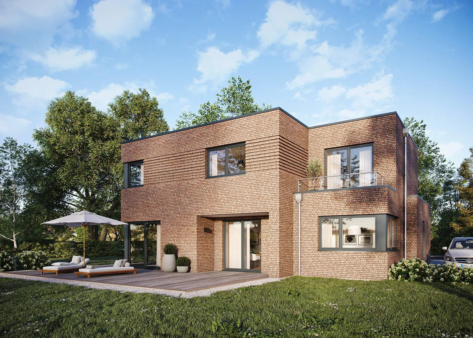 Die klaren Linien und kubischen Formen der Bauhaus-Architektur haben vor hundert Jahren den Baustil vieler Häuser revolutioniert und wirken bis heute modern und elegant. Unsere norddeutsche Interpretation mit klassischem Klinker und Ziermauerwerk fügt dieses Haus harmonisch in seine Umgebung ein. Innen bietet es mit drei Schlafzimmern, Fitnessraum, Büro sowie zwei Bädern viel Freiraum.