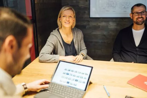 Komm einfach zu uns in die BAUWELT oder in eines unserer Musterhäuser, auch gerne ohne Anmeldung. In der BAUWELT wirst du zum Beispiel von unserer Kollegin Edith Brand empfangen, die dir schon etwas über unser Bauunternehmen erzählen kann. Sie kann für dich einen Termin zum Erstgespräch mit unserem Beratungsteam vereinbaren. Du hast noch kein Grundstück? Dann sage das bitte direkt bei der Terminvereinbarung.