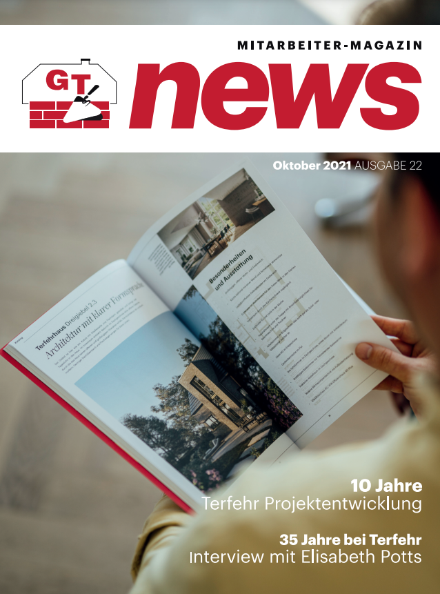 Ons journalistiek bedrijfsblad GT-News staat boordevol met alles wat er in ons bedrijf gebeurt. Nieuwe projecten, spannende evenementen, ideeën en visies – en natuurlijk alles wat er uit de wandelgangen van onze grote Terfehr-familie naar voren komt. Van bakrecepten tot verlovingsfeestjes. Op die manier zijn onze werknemers en zakenpartners altijd op de hoogte en leren onze klanten ons beter kennen.